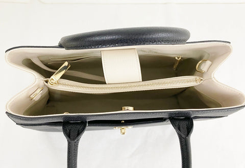 Item: New Chanel Tow-Color Neo Executive Tote. Description: Stunning New 2017-2018 Chanel Tote Featuring Black Pebbled Leather Front And Beige Sides, Front Gold-Tone Logo Plate And Pocket With Turn Latch, Back Pocket With Magnetic Snap Closure, Duel Rolled Handles, Detachable, Adjustable Shoulder Strap, Four Protective Feet, Three Interior Compartments With A Top-Magnetic Tab, Center Compartment Is Zipped, Two Interior Side Zipped Pockets And Two Slip Pockets, Attached Key Strap And Canvas Lined. Includes Box And Tags Bag. All Kmk Luxury Consignment Merchandise Is 100% Guaranteed Authentic. Color: Black And Beige. Measurements: Width: 13.25 In. Height: 9 In. Depth: 5.5 In. Handle Drop: 4 In. Strap Drop: 15 - 19 In. Adjustable Fabrication: Leather. Condition: New With Tags And Box.