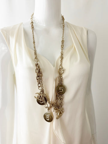 Description: Chanel #5 CC medallion belt or necklace.