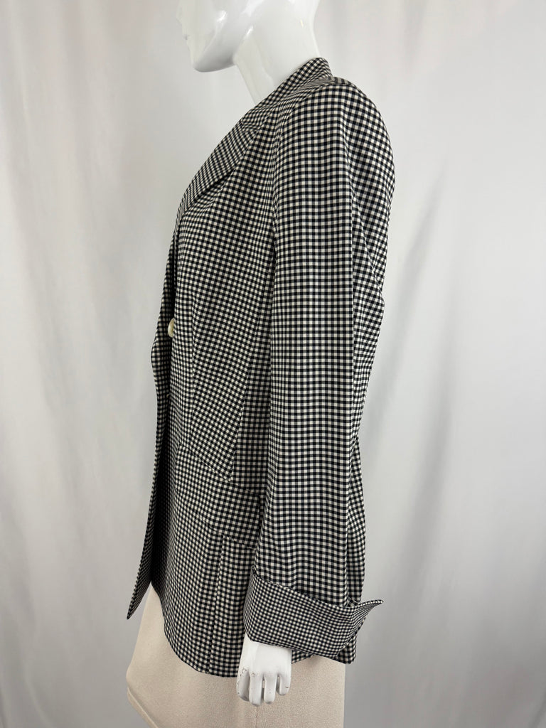 Material: 96% wool, 4% elastane. Lining: 65% acetate, 35%viscose. Sleeve lining: 68% acetate, 32% polyester.