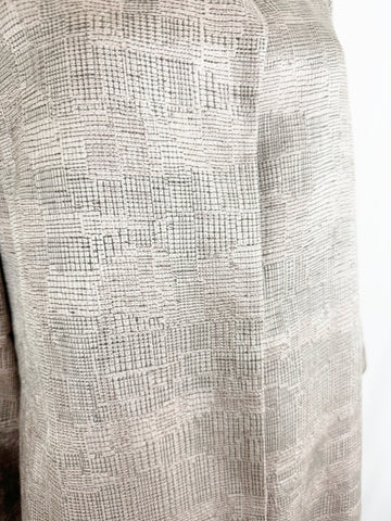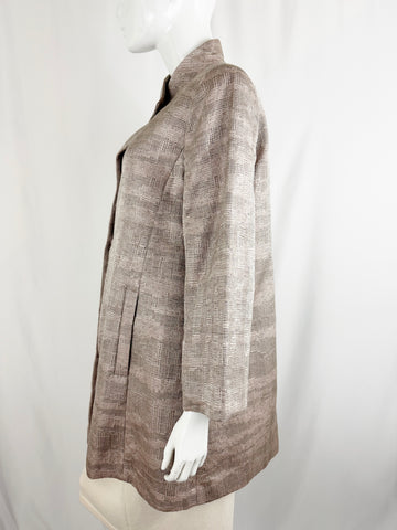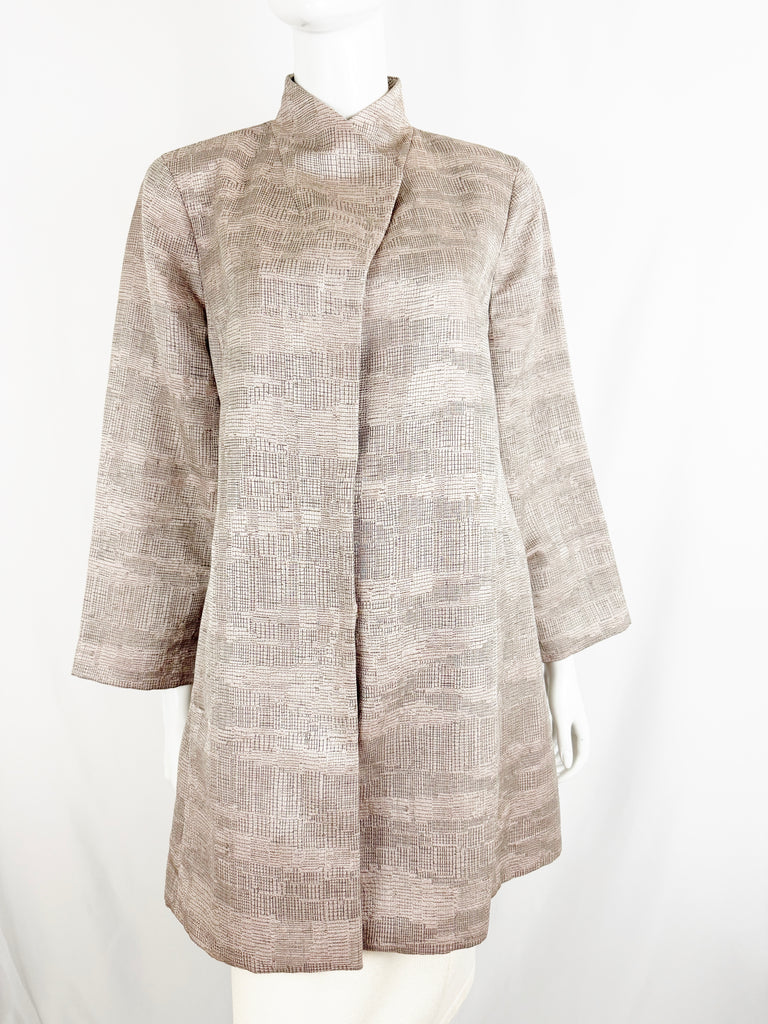 Material: Shell: 48% recycled polyester, 35% organic cotton, 17% silk; Lining: 100% rayon