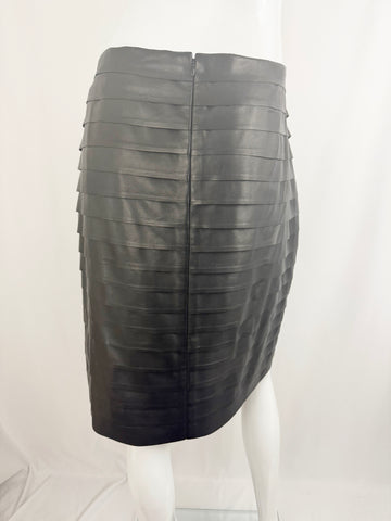 Description: Nappa leather horizontal pleated skirt featuring back zipper and button closure, and fully lined. Retail: $2,990