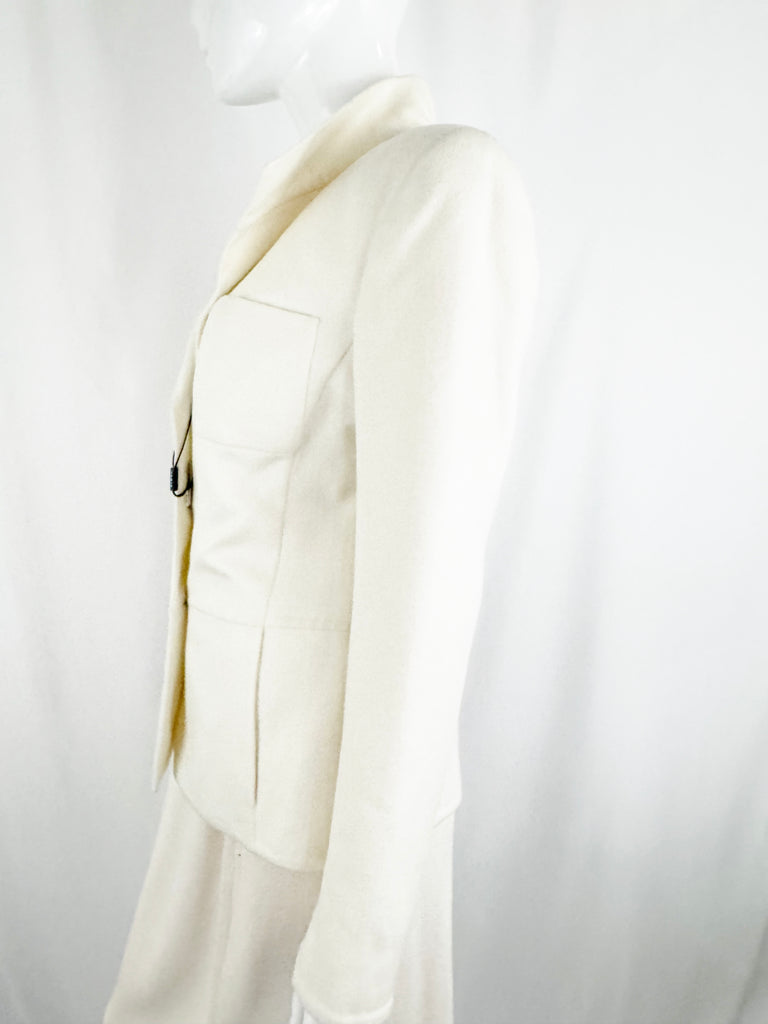 Material: 45% wool, 45% angora, 10% cashgora; Lining: 55% viscose, 45% acetate