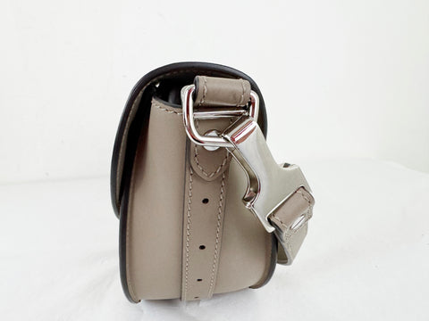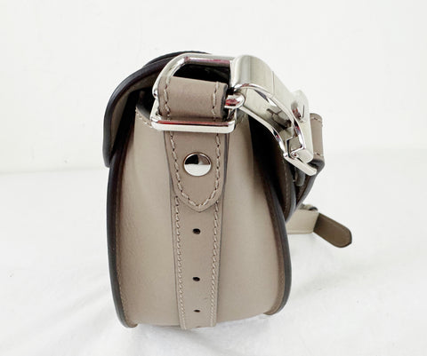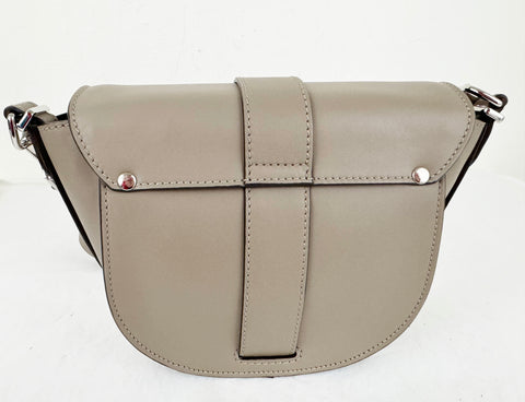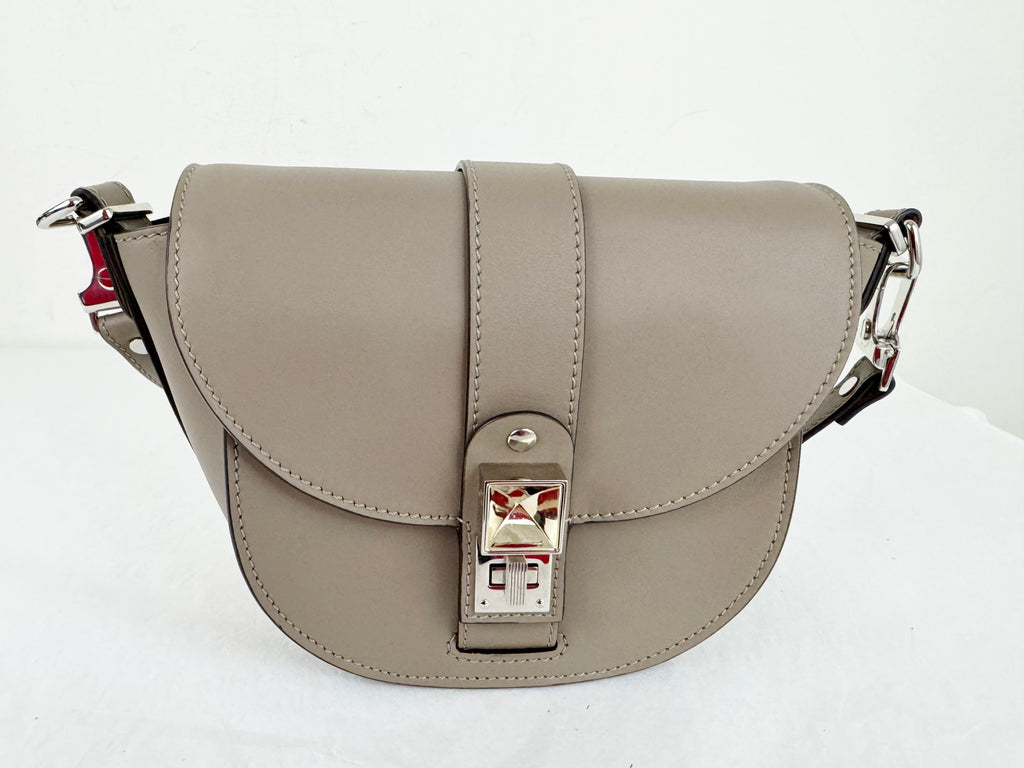 Description: Leather flap crossbody with turn latch closure, detachable and adjustable strap, silvertone hardware, one interior slip pocket, black lined.