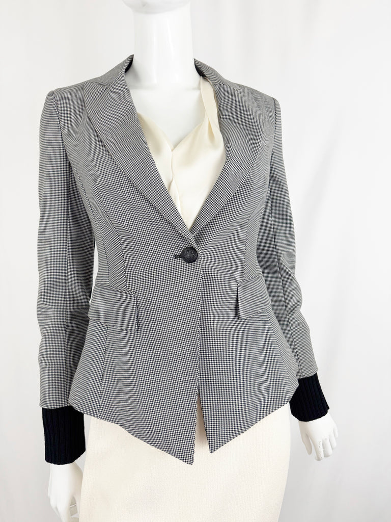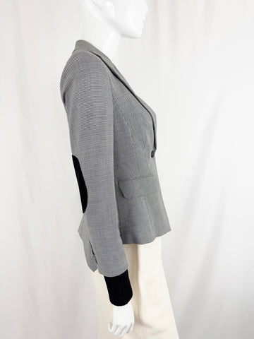 Material: Self: 53% polyester, 43% wool, 4% elastane; Combo (elbow patches): Goat leather