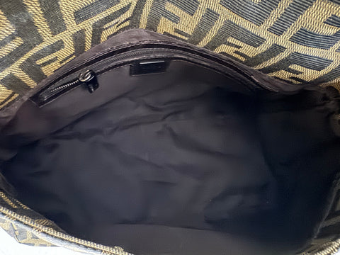 Material: Canvas exterior and lining; Leather strap and trim